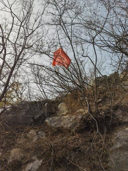 接近16点,老王念叨回家的车,我及时在一条一串红布条的沟指引老王朝北侧方向下撤,下面是隧道口施工点,大约对着黄土台村位置。半个小时后,老王来电话说成功到了公路。