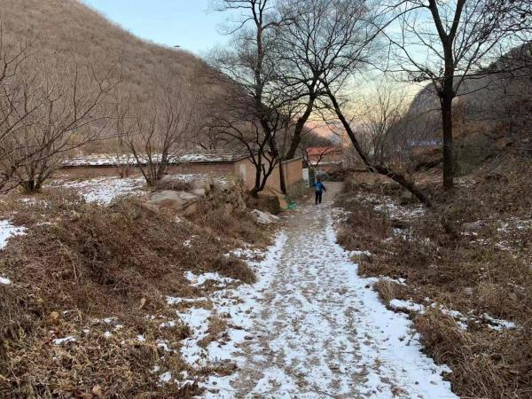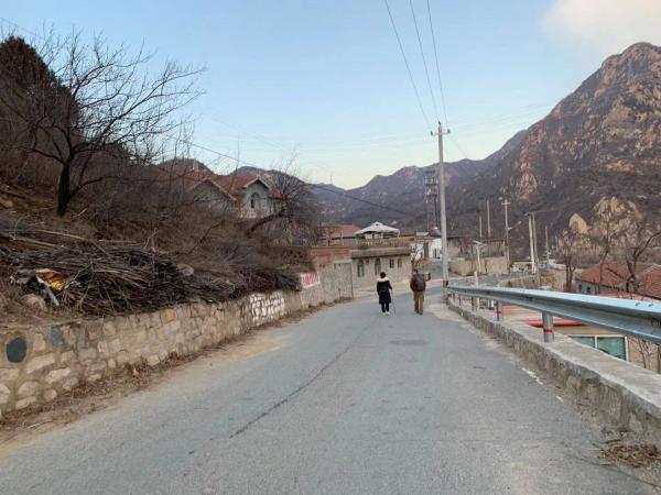 在黄昏的余晖里,我们终于下到山脚了,跟着行牛聊着天从炊烟袅袅的村庄穿过,北方的村庄外形看上去和我们不一样,但是烟火气却是相同的。