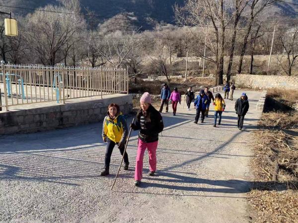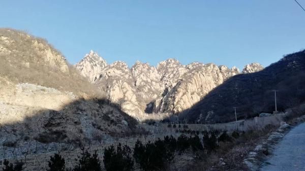 二公里后我们穿过高速路开始沿公路上山,这时的阳光照在旁边光秃秃的山石上,金灿灿的很是好看。盘山公路一直上升,走了一圈又一圈,气温低但是无风,在阳光下走着很舒服。这样走着走着我们就上升了5百米,来到了一处农家院落,空旷的山谷中,看着冬日阳光下,落地窗的平房,还有屋顶的晒台,我好想在这里住下来,在躺椅里懒懒的晒太阳。嗯,这个心愿在将来一定要实现。