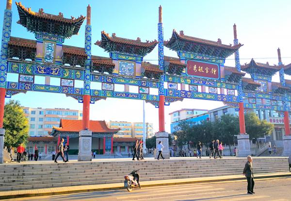 老城广场热闹,城墙丈余,城头石匾“偏头关”。