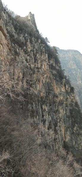 路再次出现,上至山脊,绕到上一层断崖的崖根右侧横切。