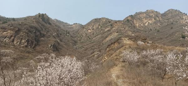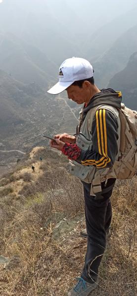 察该区地形,南面为致富路进出孔道,行走路线主要分西、北、东三条线。西线已走过东台村-石门窑-杏树台-蒲洼村-麦界口-西太平。今天走的是北线龙门台-大地港-鸡冠子崖东峰-水湖子-西太平,是该区的重点,也是难点。