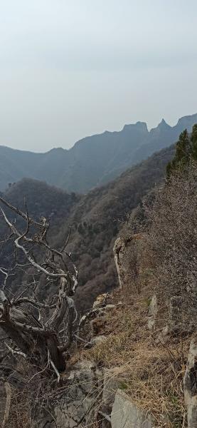 十二点半登崖顶往南看锥状山峰。