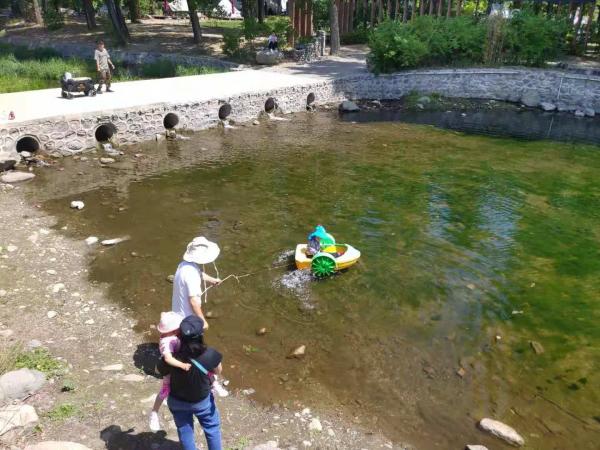 5、路边露营营地,发现有个在水里遛娃的。