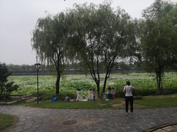 桃子湖边,一群优雅女子在聚餐拍照熏香抚琴,真是养眼。