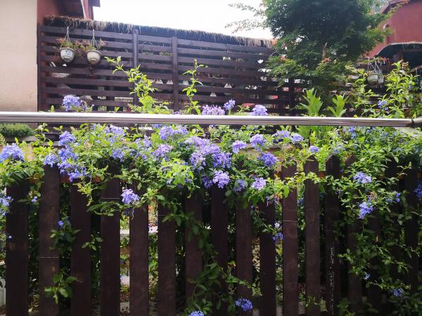 老远看到栅栏边竞相开放的蓝雪花,真是美不胜收,花园里的多肉也长势喜人,我没法养好他们,只可远观不可亵玩也。