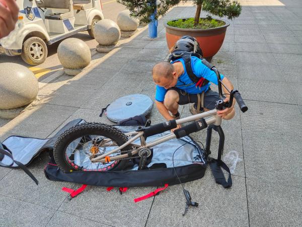 2021年9月4日,溆浦,晴,37°C,从溆浦南站出来感觉很温暖,入眼第一幕就是自在鱼在感叹溆浦的群山,让我想朗诵高尔基的《海燕》(宋小宝版)来应个景,然后车神小熊出场了,现场组装攀爬特技自行车,很有谍战人员组装狙击枪的范。自在鱼看完白云再看小熊,觉得轮子比腿快,不骑车的4人就先行一步了。
