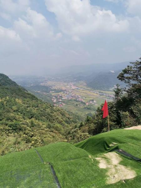 看到水库边梨树,好像来过,上山了,机耕道无树木,白石沙路面,太阳晃耀白光,高一脚低一脚,昏头昏脑,大汗淋淋,终于到了山顶,九峰山滑翔基地,