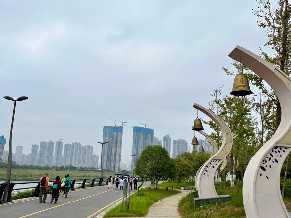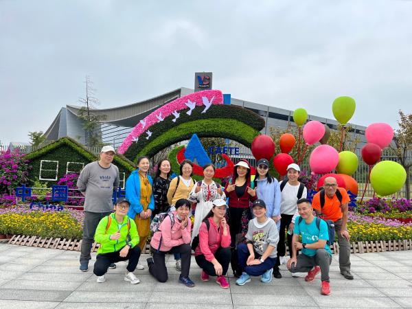 第一站长沙国际会展中心,这里是集设施先进、配套齐全、国内一流、世界先进的集展览、会议、商务等功能于一体的会展综合体。会展中心紧邻浏阳河,环境优美,路边还有鲜花布展刚刚结束的“中非贸易博览会”的牌子,大合影肯定是不能少的。