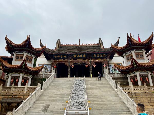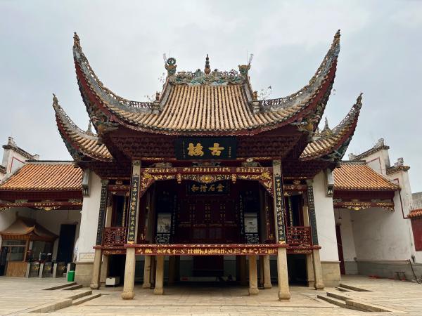 第三站陶公庙,又名昭显灵应宫,位于湖南省长沙市长沙县㮾梨街道,濒临浏阳河,枕靠临湘山,始建于南朝梁天监四年(505年),有“六朝遗庙,千年名山”之称,主祀晋名道陶淡与其侄陶渊明,为中国道教全真道龙门派宫观。陶公庙由山门、古戏楼、石级、正殿和偏殿等建筑构成,总占地面积7300平方米,总建筑面积1852平方米;过山门后紧接门屋,正中为一戏楼,大门自台下可入内庭,戏楼左右为天井,其外为东西两间明屋,均为单檐硬山拉弓式建筑。