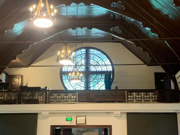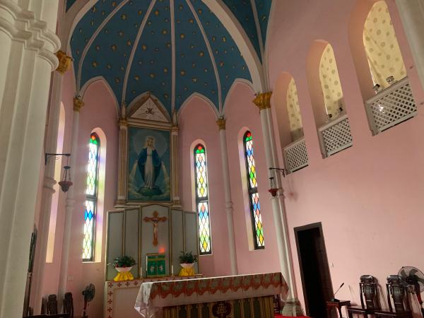 该堂始建于1902年, 1917年重建。这个穹顶很特别,是中国传统的庑殿顶和歇山顶,为了用熟悉的建筑语言与信仰感情产生共鸣。
