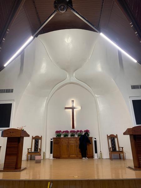 城北堂我不陌生,幸运的是今天有慕道班的老师带我们深度游,注意到了许多平常不曾了解的细微设计 。比如这个讲台背景原来是个高脚杯的流线,有“福杯满溢”的美好寓意 。