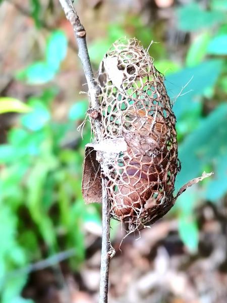 穿过星空木屋酒店的山坡,我们从山的另一侧农户的屋后下山,绕过一个干涸见底的池塘,从一个茅草洞爬出来,钻入一片灌木丛。迷茶眼尖,发现了真实版的金蝉脱壳,她真有心,准备带回家给孩子科普。我第一次见它,麻起胆子仔细端详平日不敢正视的虫子。从中也领悟到一点:当生活遇到挫折处于逆境时,我们要相信自己,既然能作茧自缚,也就能破茧成蝶。