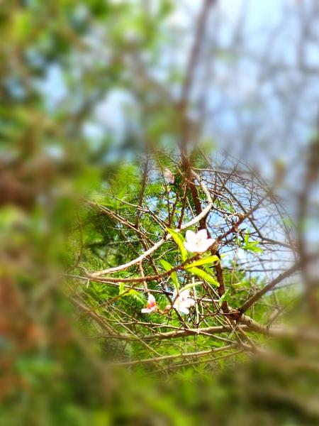 植物真疯狂,在叶落深秋时节,竹笋破土而出,不久的将来也许就长成修长竹子;桃树也不甘寂寞,枝头上挂几片营养不良的鹅黄的叶子,零星开几朵点桃花附和着桃叶,冬季即将来临,桃花难到不迷惑:今年该不该结果?明年三月是否依然要盛开?