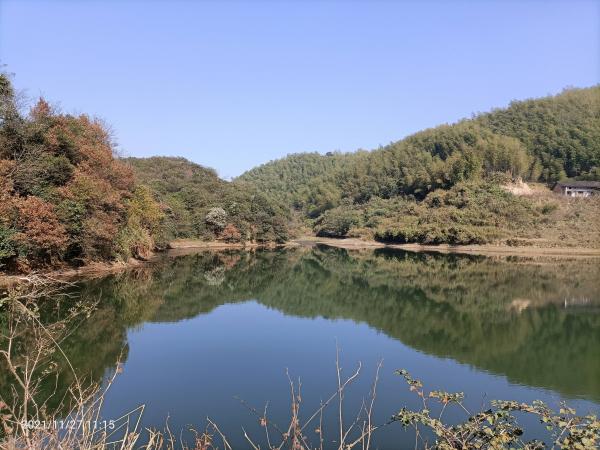 小憩碧塘欹水杉