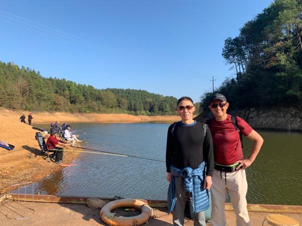 花语在这里独自坐公交回家了,我们三人继续往水库而去,曾朴塘水库就在村庄里,面积挺大,是周围人钓鱼的好地方。原本以为是在幽静的山里,有点小失望。