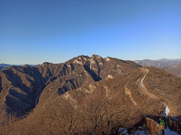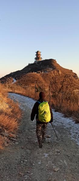 早6点半到石门营,集合时间尚早,为保持体温,在石门营文化公园、门头沟幸福广场溜达了一圈,慢慢走到苛罗坨。7点聚齐,立即出发,经娼妓桥,走芦潭古道。远望,红日初升,金山吐辉。