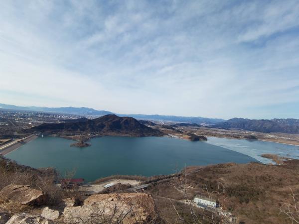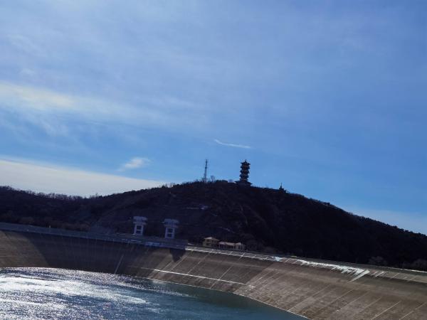 水库西面,是为十三陵,金色琉璃,清晰可见,以陵为中心,前有水,后有靠,左有脊,是为群山,右有堡,是为天池瞭望塔。