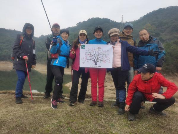 我们在先锋水库大堤上路餐,趁他们午餐时,我在先锋水库走了一圈,正好是1公里。