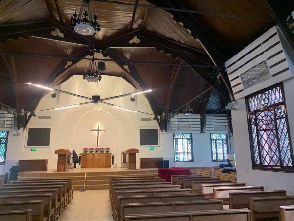 来到城北堂,好像当时教堂外部(可能也有内部?),还在装修中。
