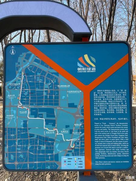 言归正传。从客户写字楼出来,可见昌平绿道起点的标志,让我想起来上周莽山课题行进中看到有队伍逆行,纳闷不会有人这么早就爬完山下来了,后来才知道是去走昌平42公里绿道。这世界上如武林阿混般能顶风冒雪披荆斩棘单日行走42公里爬升2000米者毕竟凤毛麟角,然而绿道的出现却让普通百姓能够尝试业余马拉松的体验,万一走不动还能骑个共享单车。于是我决定骑车试试,当时已经下午三点多,去昌平不现实,还是走朝阳绿道回家为好。并且开题以为记录。