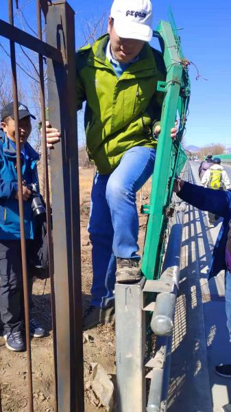 半路上收到逛逛信息,马坊桥的出口给堵上,铁网子只开了一个很小的口子,估计就棉芯能过去,其他人估计是过不去,让我们最好提前200米就找出口出去,结果我们提前500米也没找到出口,只能先走过,在看看情况。到了后发现,还好,口子不不大,但是爬到上面去就能过,棉芯、南瓜叶是无悬念的通过了,小硕同学很自信,结果没过去,没想到,当同学竟然过去了。
