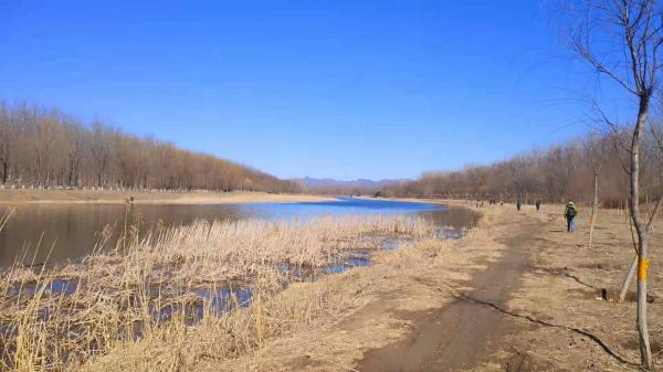 集合完毕后,沿温榆河河南岸一路向前,首先穿过一个垂钓园,垂钓园的门口用大喇叭广播,处理垂钓用品。