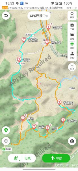 蓝线为规划线路,橙线是轨迹记录。