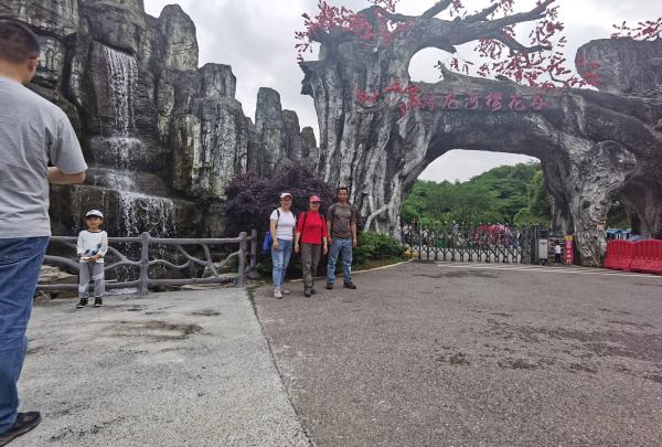 我们还约定十一个月后再免费的进来观爽一次樱花盛开,最后走出樱花谷大门,让一位小哥帮我们拍个合影留念