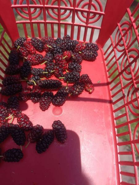 步行俩公里左右,路边零散零散有了桑树,果儿有点小,黑色和紫色的还不多。蚊子再小也是肉,摘了再说,尝了下,酸酸甜甜的。他们说,前面有更大更好的,建议我吃完去那里摘大果。那,就先吃吧,开吃开吃......