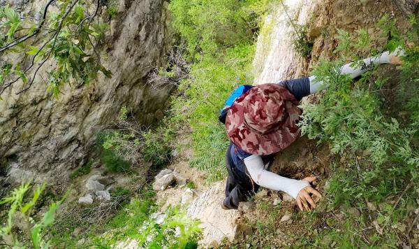 大裂缝刀削斧劈的样貌令人印象深刻。裂缝实际上有两条,相隔十数米,都有路通上去。我们走的右侧,有一块巨岩不好攀爬,放了树枝,也可以从树枝左侧绕行。峡谷爬行,碎石密布,坡陡石高,有恐高者应当谨慎。
