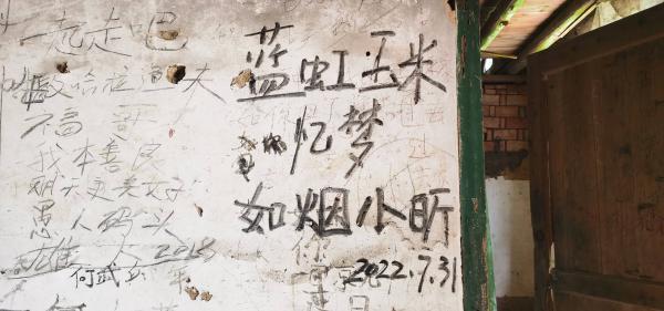鬼屋(下山回来我们也学着出走前辈们的游记用黑炭在墙壁上留下5人大名,落款出走社,不知这栋标志建筑-实为护林员原住处,还能幸存多久)