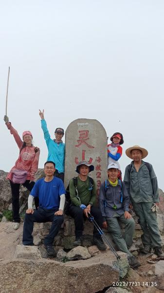 回了个电话,休息了一会儿,心率慢了下来。我估计到顶峰应该不过一两百米,五到十分钟足够了,于是起身前行。没走几步,透过浓雾,看见社友们已经下来了。我默默地转身,下山!