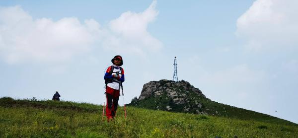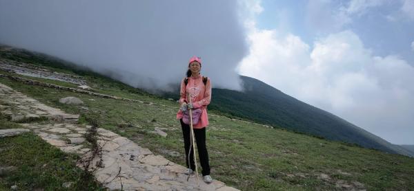 路餐后向主峰进发,大神们都跑在前面,我与沉香同行。一路上都是平缓上升的高山草甸,路况不错。渐渐地她的身影也越来越远,越来越小。