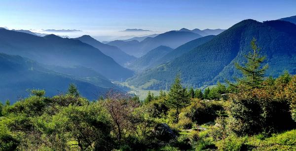 早六点出发,走了八小时,从中台放眼,左右两个山尖,北台、东台是也。路线先北台后东台。
