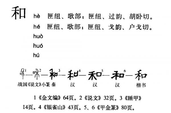和(拼音:hé、hè、huó、huò、hú)是汉语一级通用规范汉字(常用字)。“和”常与“龢”通用,二字本义各有所指,“和”始见于战国金文,本义指声音相应和,读hè;“龢”始见于商代甲骨文,本义指音乐和谐,后二者在词义引申脉络上有交叉,至于无别。但是用于人名的“龢”不能写作“和”,如清代政治家翁同龢。