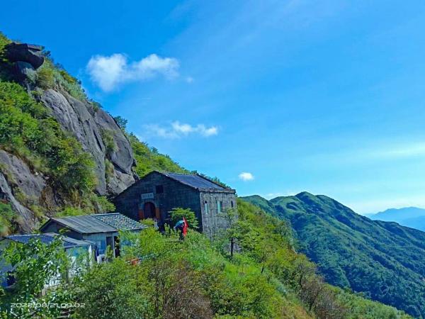 第二日上午的目标是七星岭。当我们抵达七星山庄,走上长长的木阶梯,到达一个观景亭,上到亭的二楼,吹到高山上一股股清凉的风,每个人的心中都有一个声音在呼唤:留下吧!留下吧!经过长久的挣扎,我们终于还是决定向七星岭进发,只留下蓝虹、丁果、小昕在此驻守阵地。