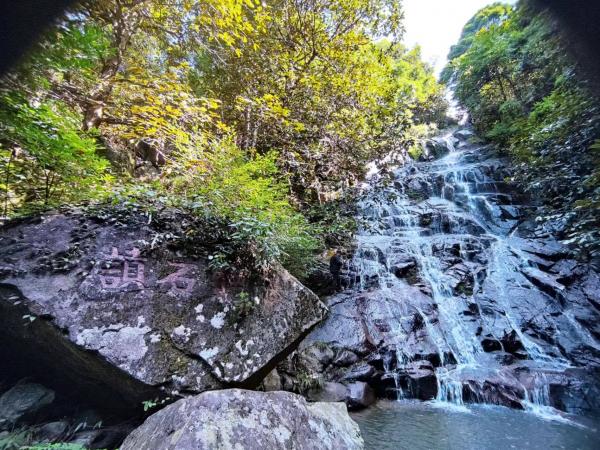我们重新坐上天马的车,来到“读石谷”,和提前赶到的,据说冷得快感冒的蓝虹、丁果、忆梦、如烟和小昕汇合。这里有条不大不小的瀑布,水流在岩石间跌宕而下,流水处看上去颇清冽,但汇聚到石潭后却有些浑浊。不过这儿确实凉快,尤其是微风吹过时,富含水离子的空气拂面而来,果然给人要感冒的感觉。