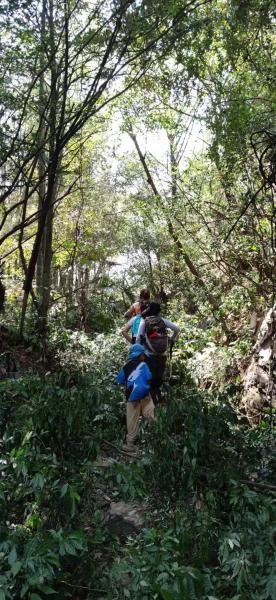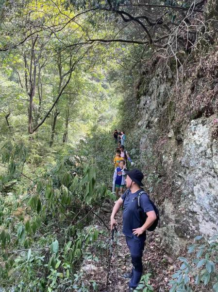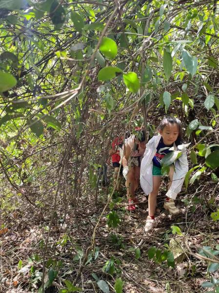 蓝虹拿起刀子走在了前面,我们也就有了跟上的理由。砍过的路依然难走,可想砍之前是什么鬼像样子。不过这些都不重要,前面有人开路,那就解决了最大的困难。最后,娃都到达了目的地,这无论是对他们而言,还是对我们而言,都延续之前的节奏,鼓舞了信心,让我们更有理由继续带着娃拥抱自然。