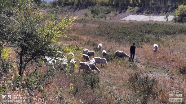 古城河几乎无水,一个老汉在河道放着28只羊,