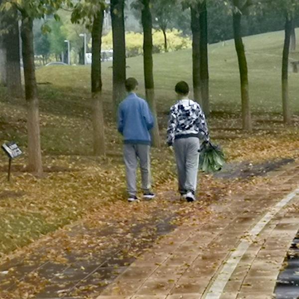 走饿了,大家终于拐进公园,绕湖半周,看锦鲤和小鸭子入迷。出公园去吃饭uno