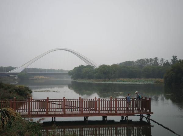 毛毛雨,天气很好。翻墙过桥,小小的探路,来到温榆河西侧河堤路,安静的柏油路,没有车,偶尔有钓鱼人骑电动经过。