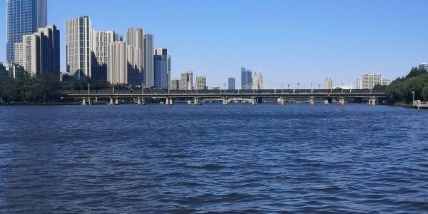 骑行道修的很好,河面宽阔,水波荡漾,天蓝水清,让人神清气爽。