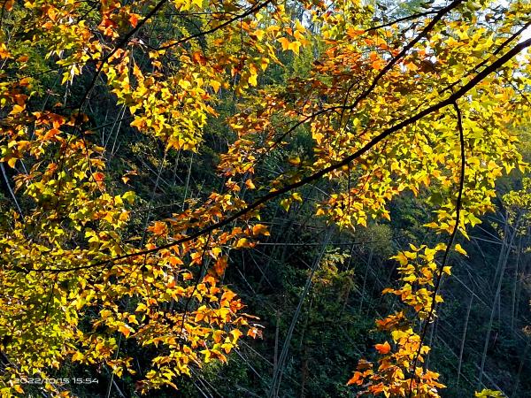 今天天气不错,登上石尖,可环顾四周群山,还可看到尖尖的云峰台。虽然日光强烈,但终究是秋后,温度还是不高,秋高气爽。哪怕汗流浃背,只要躲在树荫下,仍是凉爽。三两知己,山中走走,甚是惬意。
