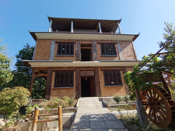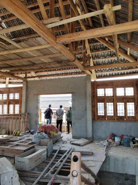 往东徐家冲方向走3公里,远远看见一栋高楼,飞檐斗拱,不像是普通民居,前去探访。到院门前探头,大厅里的嗲嗲和娭毑招呼我们进去喝茶,我们不喝茶,说想参观他家的楼,嗲嗲陪着转弯到楼前,发现楼未完工,穿过前楼,后面还有一楼,大院子,原打算做农家乐,估计钱不够,嗲嗲说有人合作继续搞。