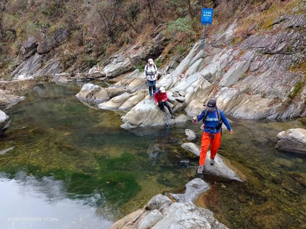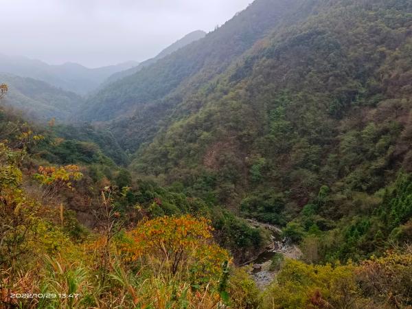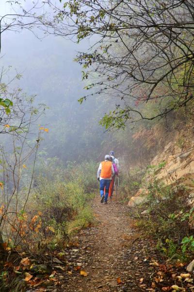 下罗汉山,至沩山漂流起点。见计划中的山牛塘山高雾锁,估计再登也是云里雾里,商议后,决定改变计划,途经云台寺,反向下山,再经峡谷原路返回。