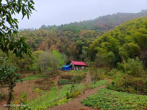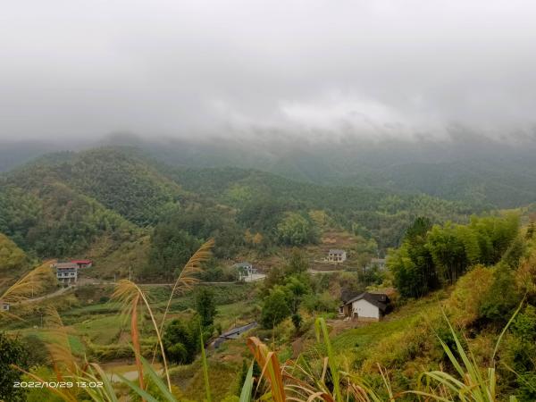 云雾漫山飘,秋色分外娆;山道好幽境,今夕是何朝?山腰之中,一处凼地,深藏一宅,有人居。与世隔绝,仅有山道通行,喻为桃源,实为恰当!