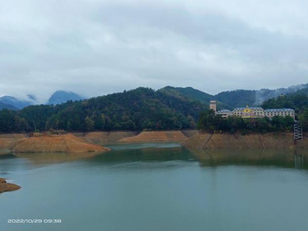 淅雨润大地,白雾锁山林。一进入黄材沩山境,便有神清气爽、心旷神怡之感。途经黄材水库,上坝一览高峡平湖,见曲水通幽,山岛耸峙,林中隐透瓦屋一角,氤氲升腾,正所谓水墨林溪,犹在画中。
