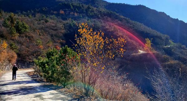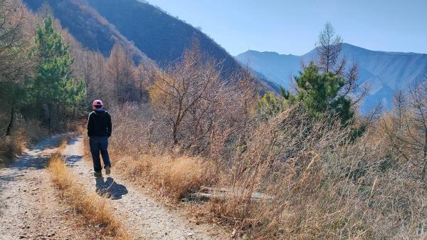 大寒岭说好的转折点,可以继续走一段返回,当同学晒太阳原地等,林场站岗人说‘昨天风有八级,就今天太阳好。