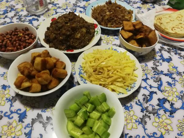第一天,懒得起,咋办,得礼貌,一桌子菜不去吃几个意思?吃两顿饭的当同学,勉强去,吃了半碗饭。跟小硕父母解释吃两顿饭。说了就好,小硕妈待客,总是热情,感谢。
